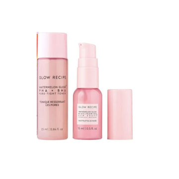 Glow Recipe Watermelon Glow Skincare Birthday Gift Set featuring Watermelon Glow Niacinamide Dew Drops mini and Watermelon Glow Pore Tight Toner mini.